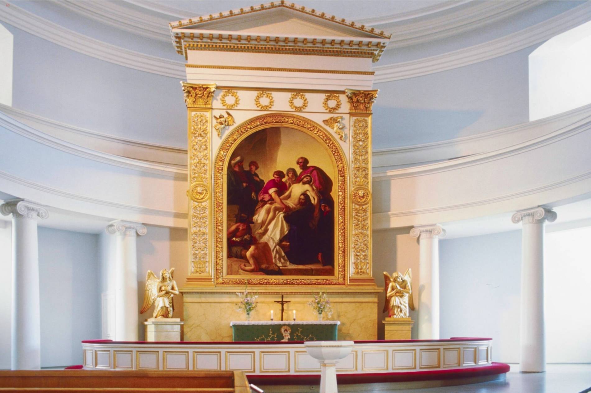 Die Felsenkirche in Helsinki ist ein aussergewöhnliches Gotteshaus. In massiven Stein gehauen, fügt sich das Bauwerk harmonisch in die natürlichen Granitfelsen ein. Die Kuppel erhebt sich auf bis zu 13 m.